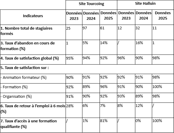 7. Taux d’accès à une formation qualifiante (%) | / | 1% | 81% | / | 0% | 100% |